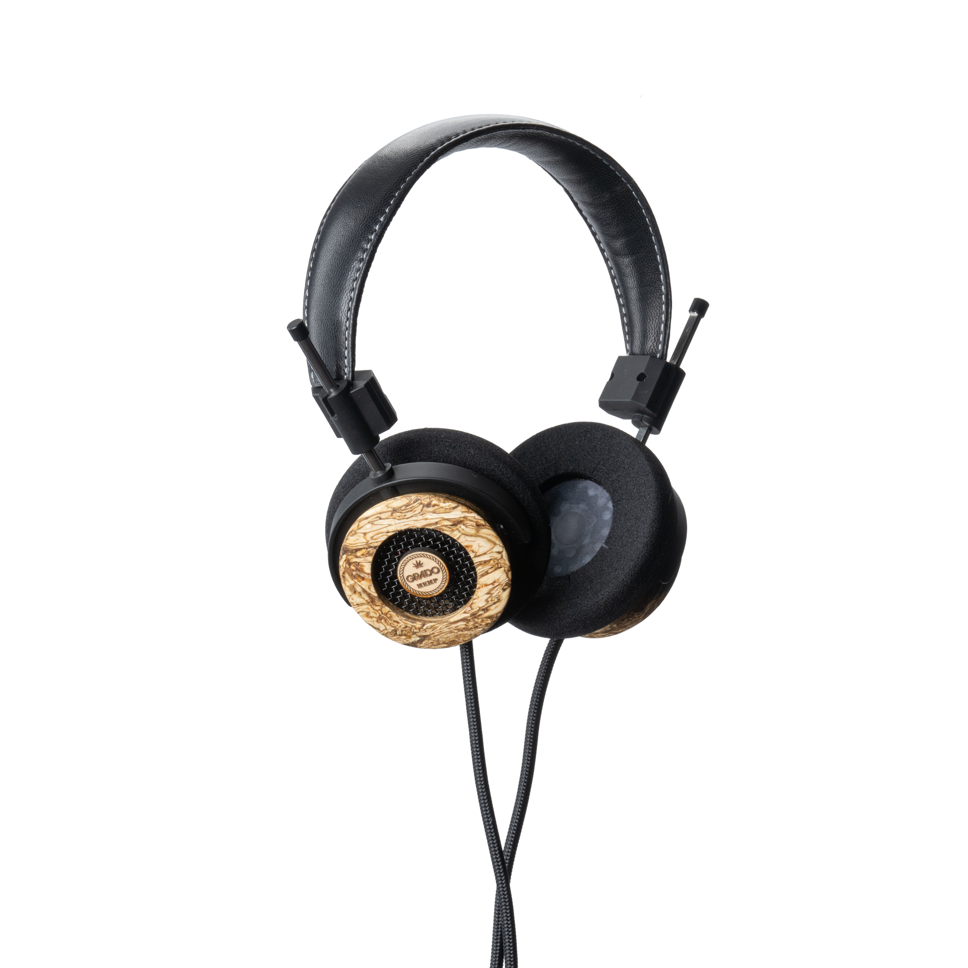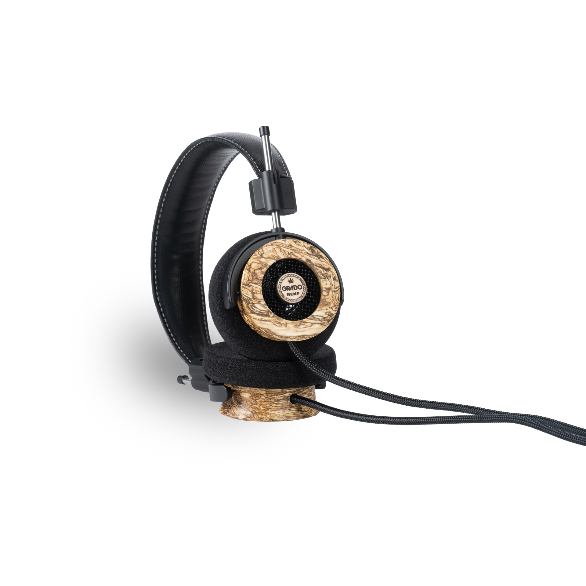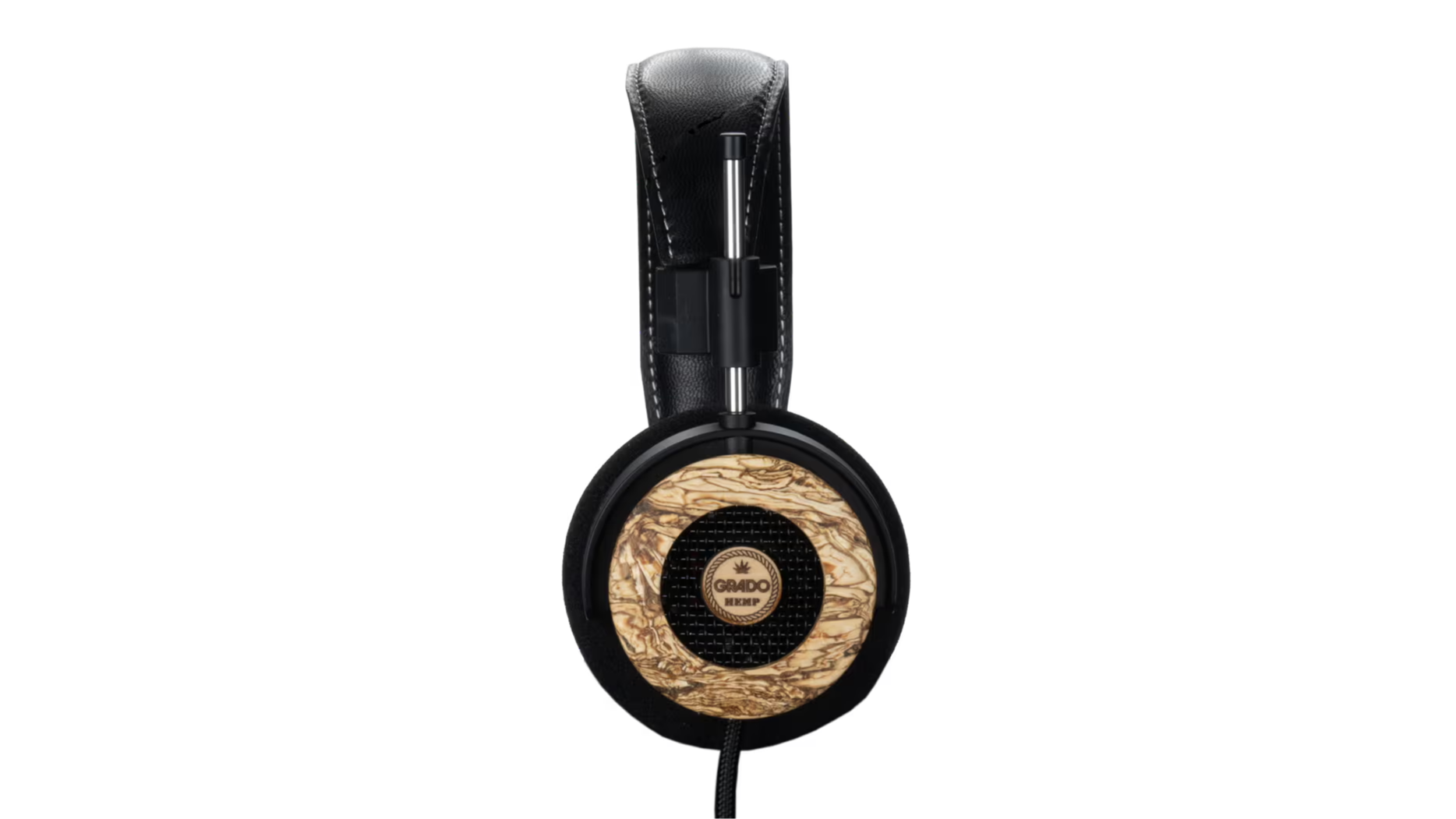 - Padded leather headband with white stitching