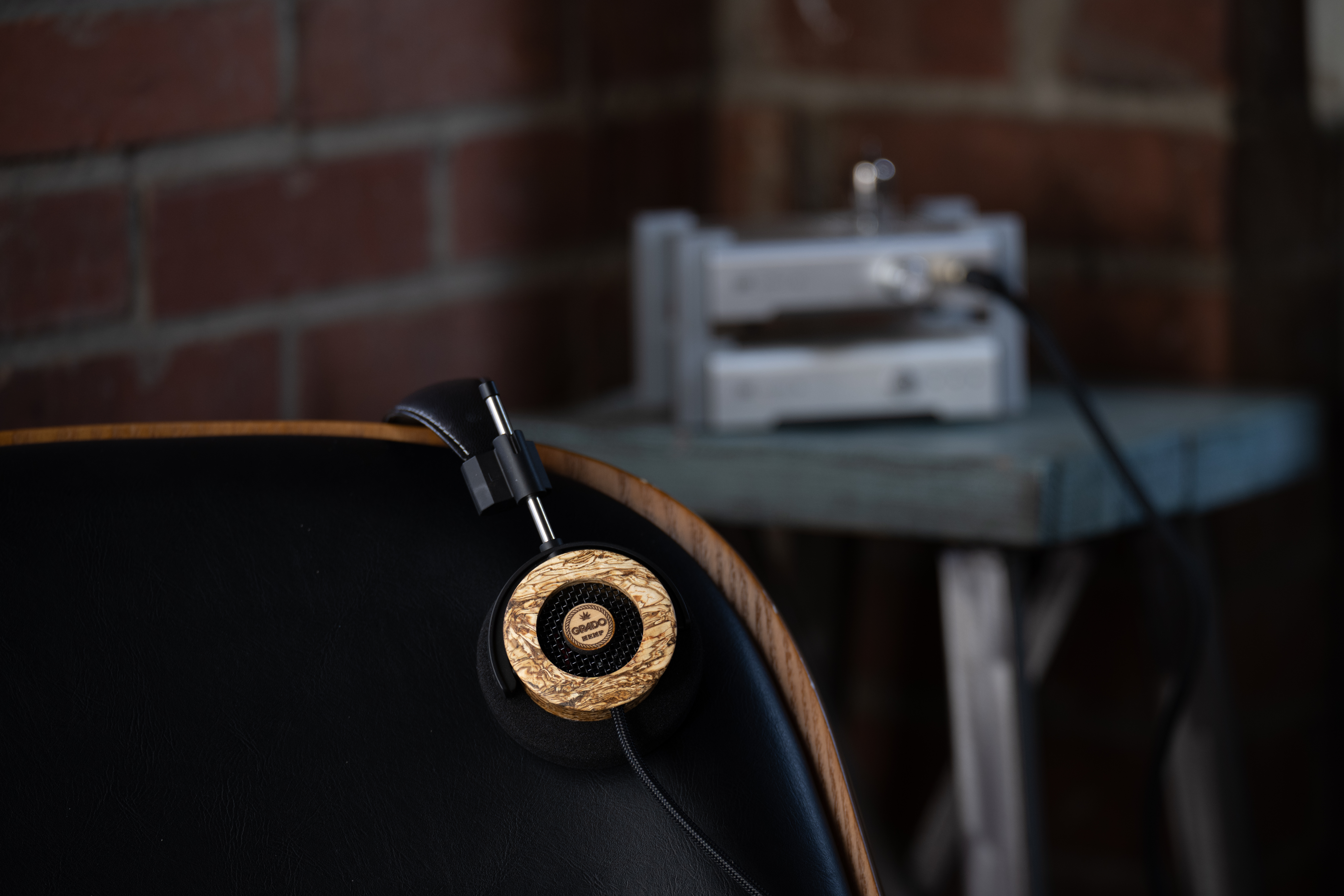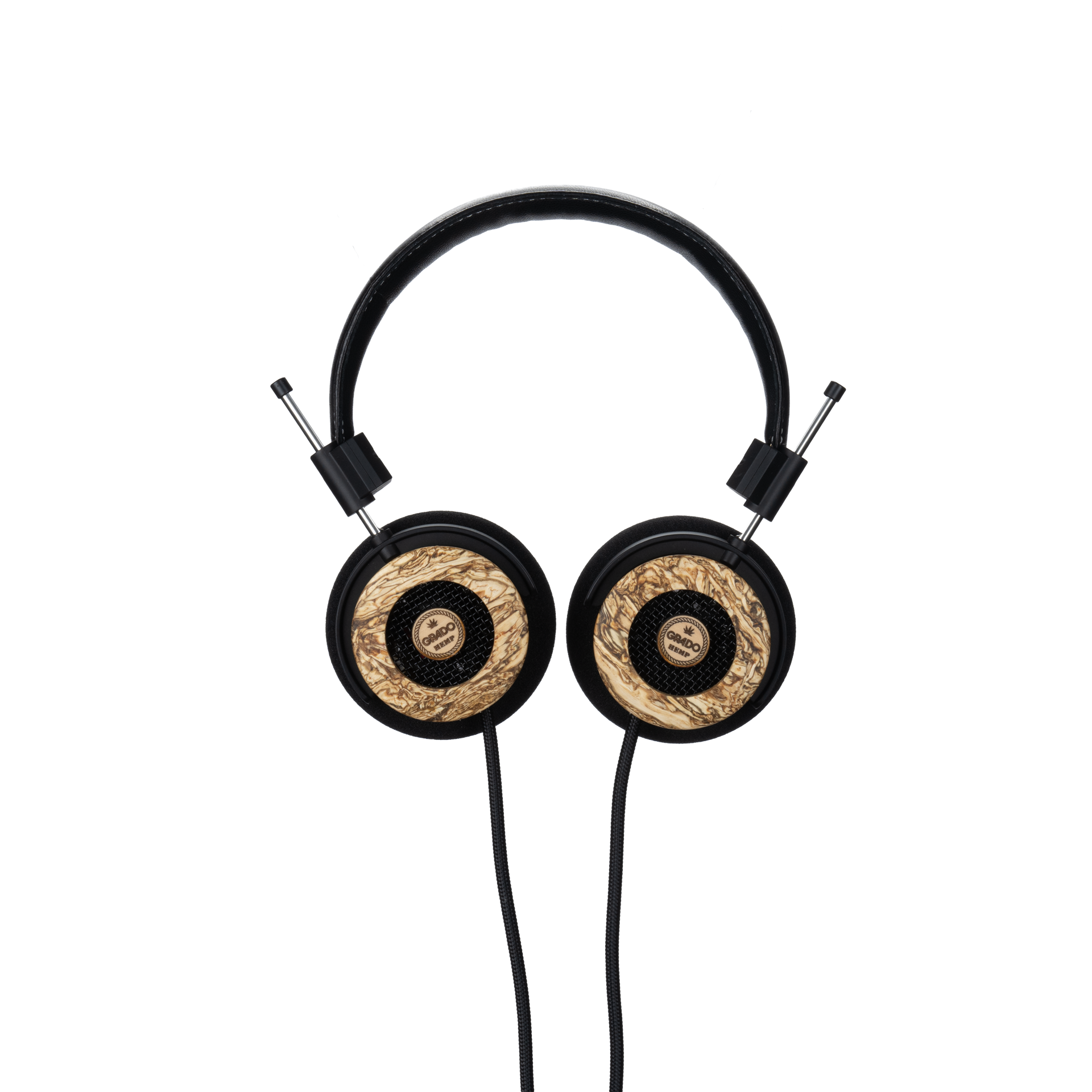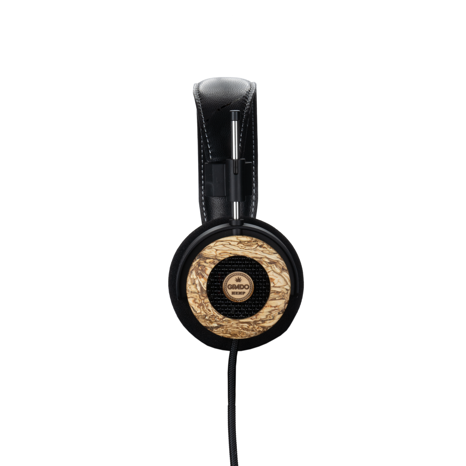 - Padded leather headband with white stitching